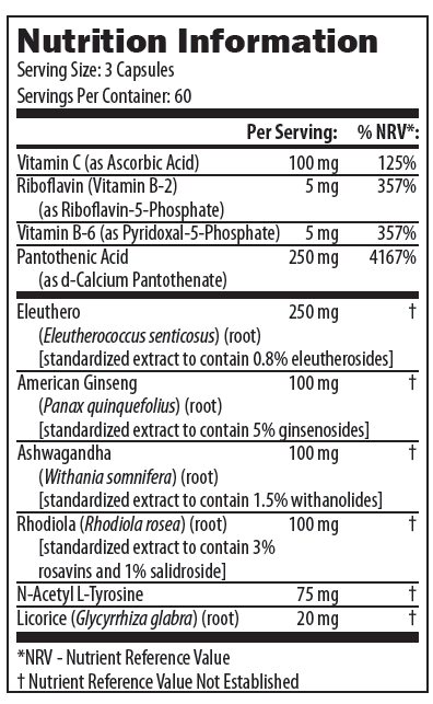Adrenotone™ is a combination of standardized herbs and nutrients which are known for rejuvenating the adrenals. This product is designed to promote healthy cortisol levels, hypothalamic and pituitary function (HPA axis), and catecholamine production (dopamine, norepinephrine, and epinephrine). Adrenotone™ does not contain glandulars.