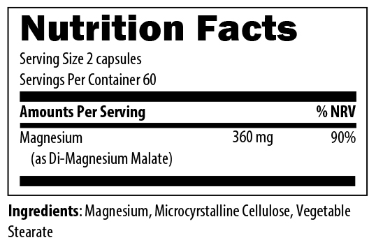 Magnesium Malate is a highly bioavailable form of magnesium. It contains di-magnesium malate, which is magnesium bound to malic acid. Malic acid is a compound found naturally in apples and other fruits and vegetables and is included because of its role in the Krebs cycle.