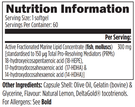 SPM Supreme™ is a combination of three highly potent “specialized pro-resolving mediators” designed to help support the body’s natural ability to respond to physical challenges and “resolve” the initial steps in the natural inflammatory process. The “resolution” of a healthy inflammatory response is an active process controlled by these unique metabolites.