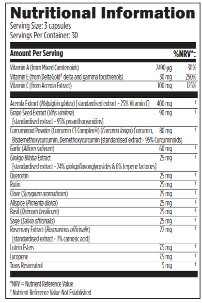 Ultimate Antiox Full Spectrum is a unique antioxidant formula derived from a combination of some of nature’s most powerful herbs and spices, along with other classic and novel antioxidant compounds. These ingredients were chosen due to their ability to maintain the function and integrity of both water-based and lipid-based body structures and compounds, including cell membranes, LDL cholesterol, proteins, and enzymes